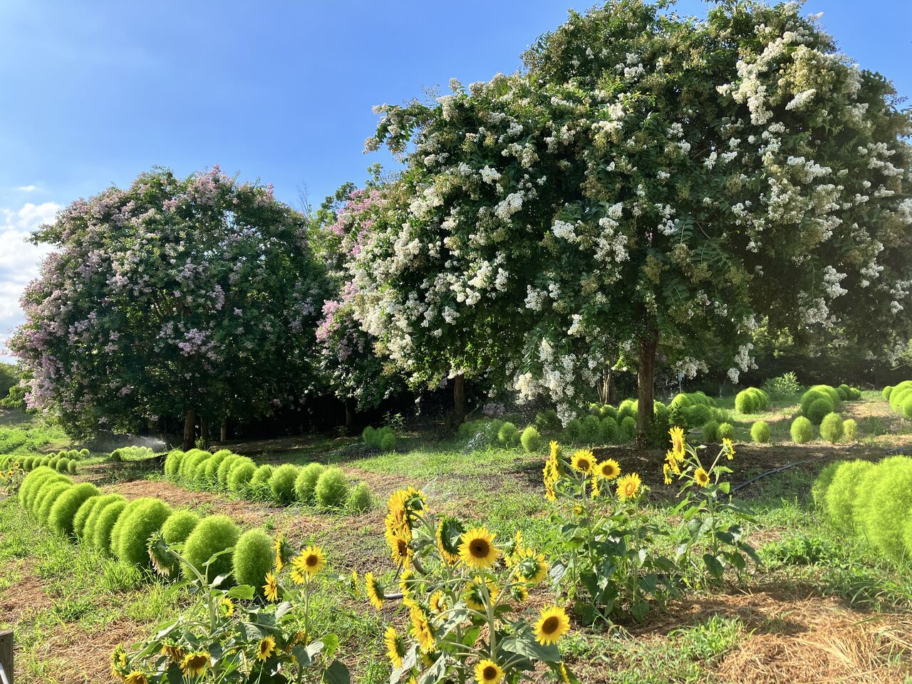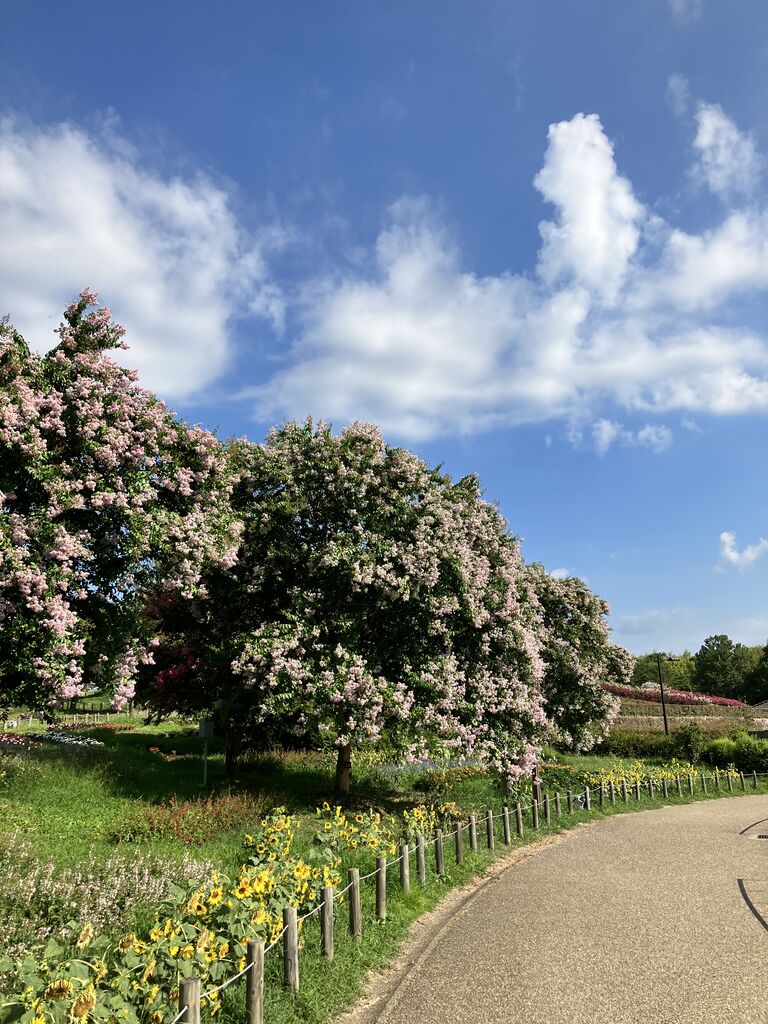 まあるく剪定されたサルスベリと