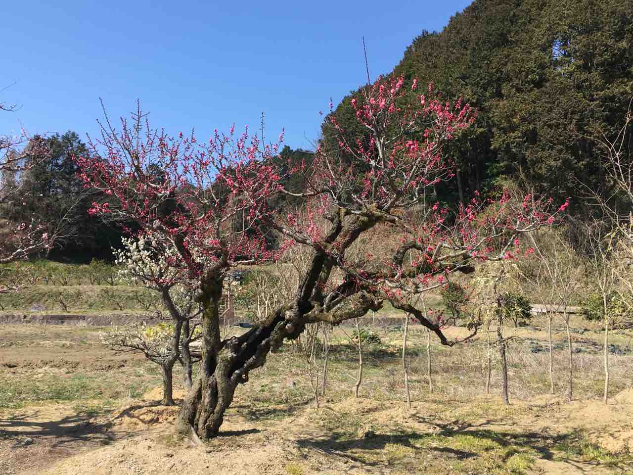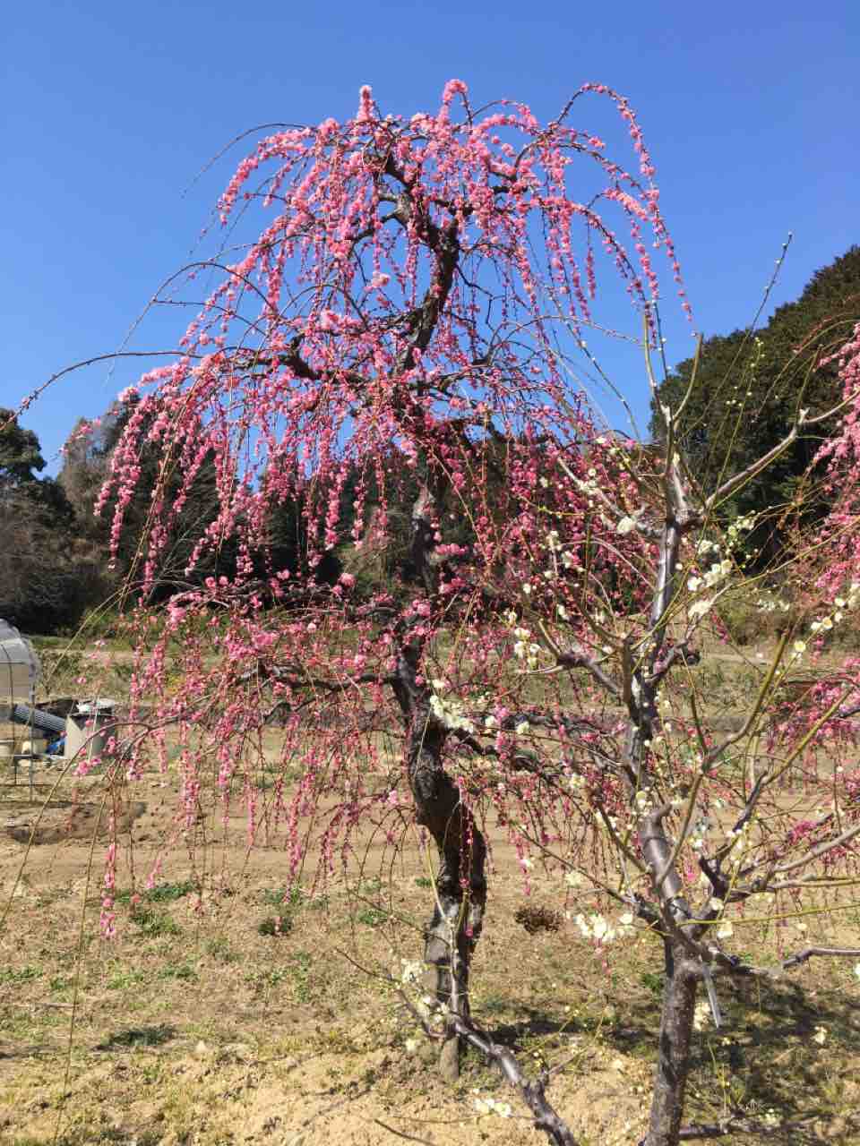 春にはとってもきれいな枝垂れ梅の植木が並ぶ植木屋さんの畠がある